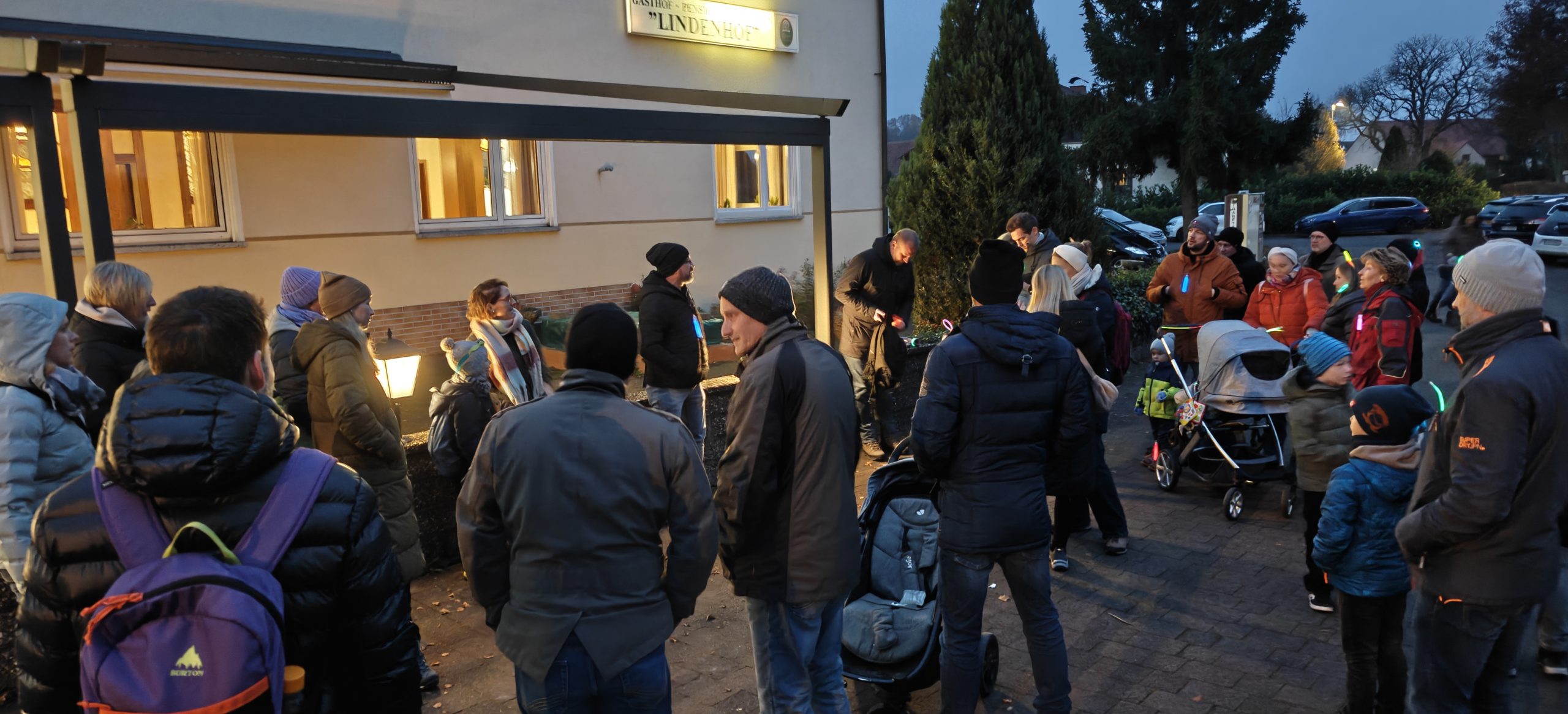 Die Strecke führte uns etwa 4 Kilometer rund um Keulos. Je dunkler es wurde, desto beeindruckender sah der leuchtende Zug aus vielen Knicklichtern aus – ein buntes Lichterband, das sich durch die Landschaft bewegte. Die Stimmung war fröhlich, staunend und voller Gemeinschaft. Zurück am Lindenhof ließen viele den Abend bei einer gemütlichen Einkehr ausklingen – mit warmem Essen, Getränken und schönen Gesprächen. 🍽️